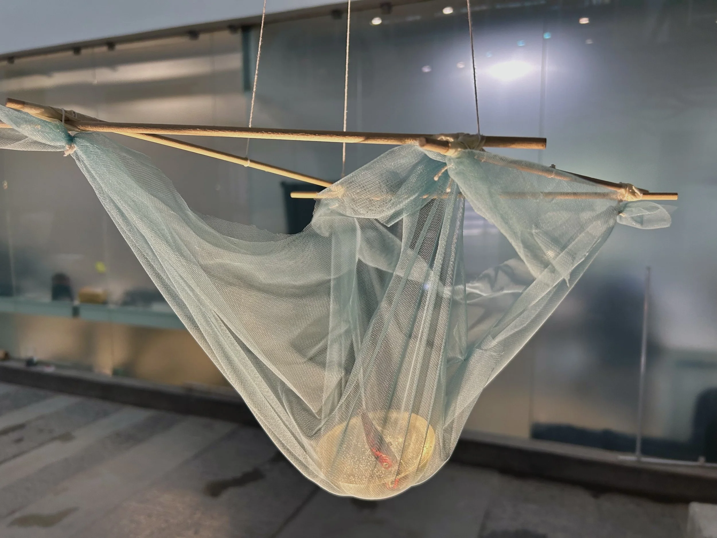 'Floating Roots' is an interactive installation exploring the cultural, religious, and political history of Pokkali rice paddy farming, a traditionally farmed, salt and flood resilient rice found across the country, especially in Ernakulam, Thrissur, and Alappuzha districts of Kerala, India. More than just an agricultural technique, Pokkali is a carefully designed organic ecosystem, one that choreographs the tides through alternating cycles of rice cultivation and prawn farming.