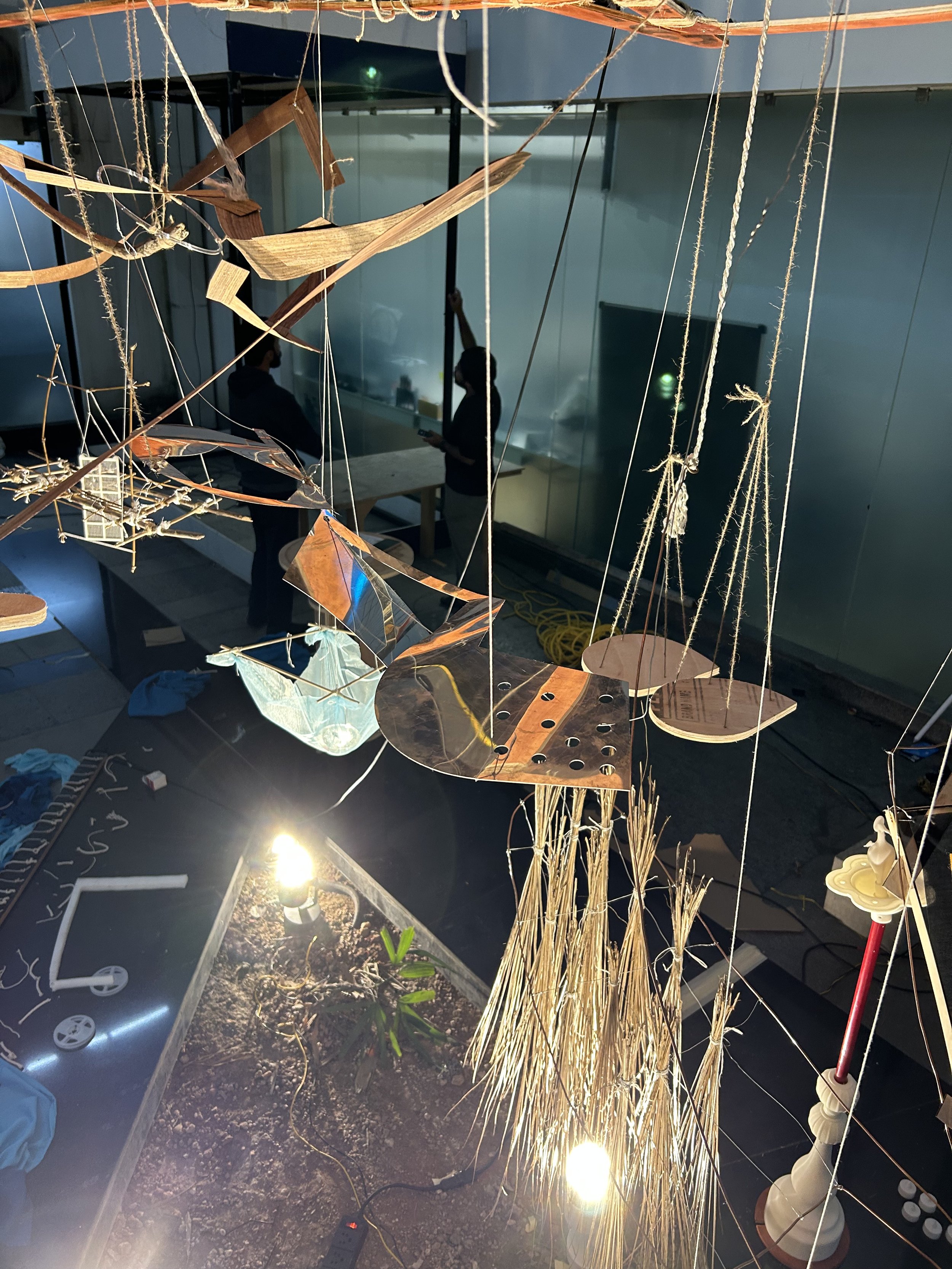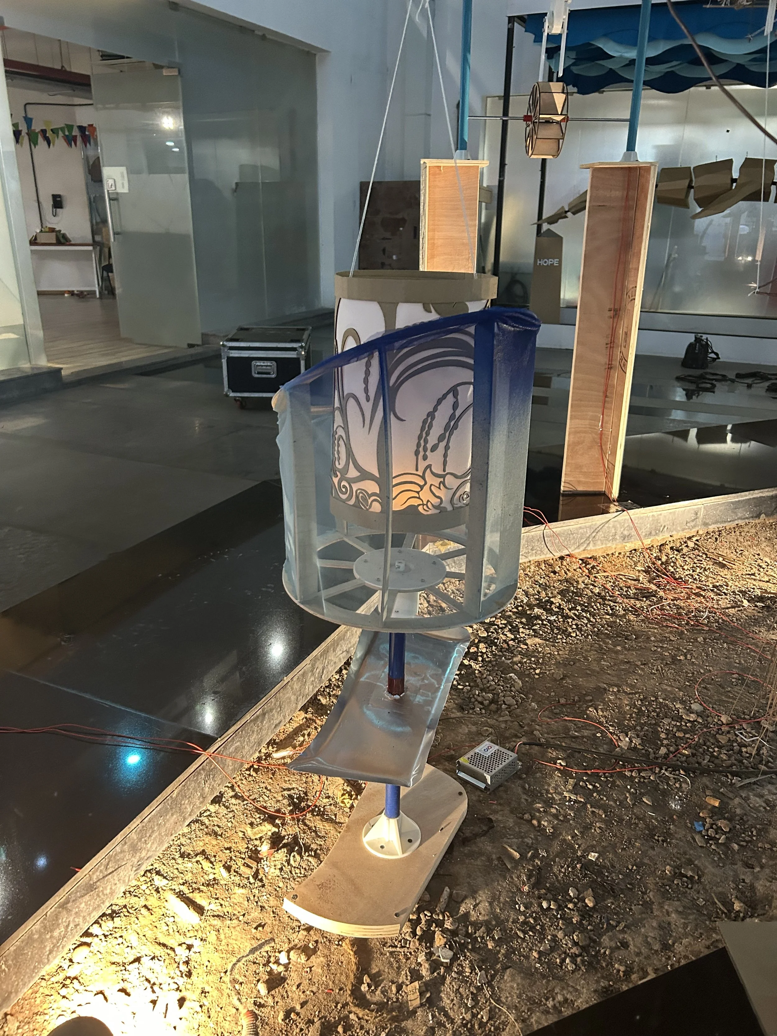 The installation is divided into four sections: Working with Water, Ceremonies of Pokkali, Ecotourism, and Building for the Future. Each story features a co-designed mechanism that symbolizes a unique aspect of Pokkali life. And each is powered by a foot pedal, welcoming the viewer to step into the experience, literally and figuratively. The project looks, bigger picture, to experiment with how technology can be used as a tool in storytelling and art, towards a more resilient future.